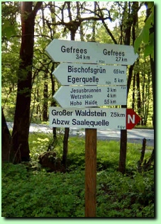 Durch eine blühende Landschaft führen die Wanderwege, die direkt hinter unserem Haus beginnen. Im bedeutendsten Wanderführer des Fichtelgebirges ist auch unser Haus als Einkehr beschrieben: ,,Knopfhammer, ein Weiler bei Kornbach, hat seinen Namen von dem Erbauer Hans Knopf. Heute steht noch das Herrenhaus aus dem frühen 19. Jahrhundert und die Ruine des ehemaligen Hammerwerks, dessen Torbogen die Jahreszahl 1822 trägt. Baulich interessant ist das dazugehörige Herbergshäuschen aus dem 18. Jahrhundert mit Frackdach, das eine früher im Fichtelgebirge gebräuchliche Hausform verkörpert.'' Am Knopfhammer führt der Nordweg vorbei, einer der beliebtesten Wanderwege im Fichtelgebirge, da er direkt zum wunderbaren Waldstein führt. Über den sogenannten Zeller Fels und die Bärenhöhe erreicht man nach zwei Stunden den 877 Meter über dem Meer liegenden Gipfel des Großen Waldsteins mit seinen malerischen Granitblöcken und dem Schüsselfelsen, von dem aus man bei guter Sicht bis nach Karlsbad schauen kann. An der Quelle der Saale oder der Eger sind Sie von uns aus in jeweils einer Stunde. |